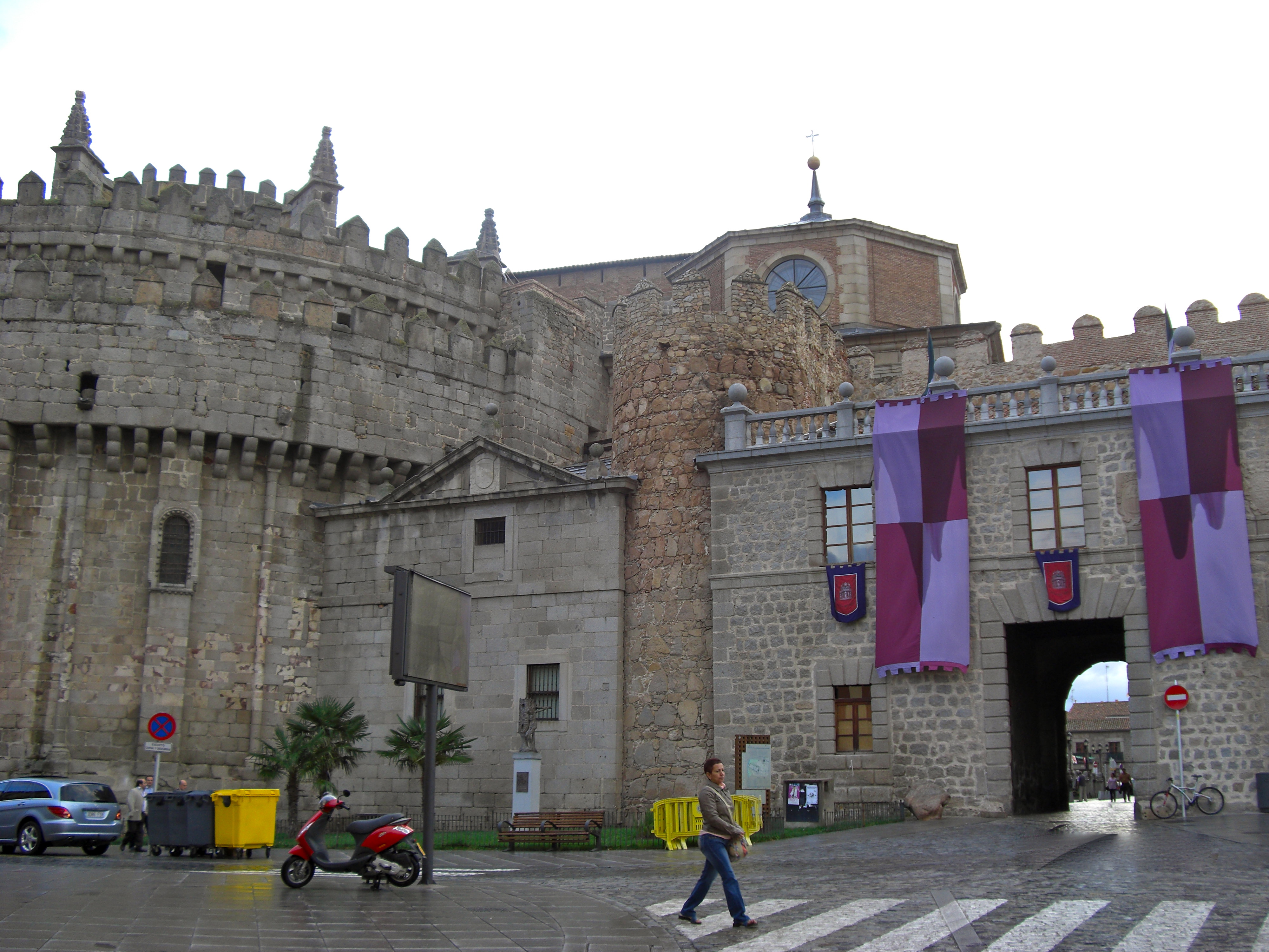 Så er det over. Jeg ser meg rundt. Ingen okser kommer løpende, løshunder her har vel også anstendighet og er nøye med hva de spiser her. Jeg har kvittet meg et bevismateriale som avslører min kulturelle arv: matpakken. På tide å gå, komme seg innenfor den gamle bymuren – og bli spanjol! Hola! Brunosten får meg til å føle meg mer ovenpå… Bymuren er enorm!