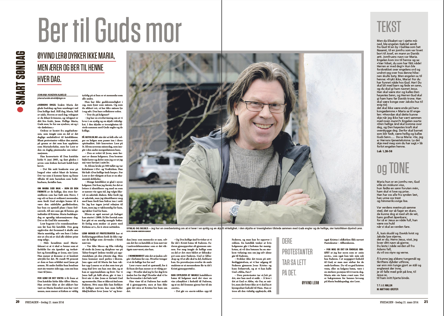 Lerø begynte å be rosenkransbønnen før han ble katolikk. Den gang opplevdes det fremmed å skulle ære Maria samtidig, selv om hun i Lukas sier at «fra nå av skal alle slekter prise meg salig».