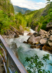 Det var nok endå meir uvirkeleg for Peter då han gjekk på vatnet. Men eg opplevde at eg ikkje fullt og heilt var overgitt til naturlovane på desse fire stega eg heller. No hugsar eg ikkje korleis eg måtte fote meg for å passere andre halvdel, men eg hugsar eg ikkje kunne forstå at det gjekk bra, det heller. Eg hadde ikkje planlagt så langt… Våt er ein ting, men om trea hadde losna kunne eg ha blitt ført nedover, og lengre nede gjekk elva i stryk. Som alltid gløymer eg å fotografere dei viktigaste tinga…